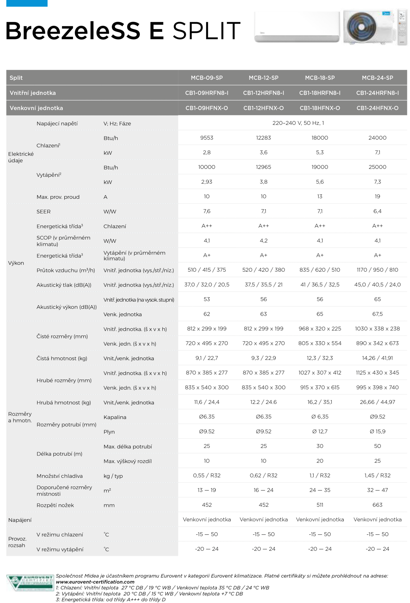MCB-12-SP Breezeless E nástěnný split (3,5 kW)